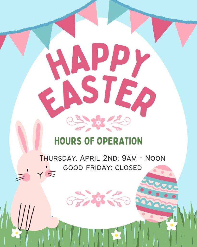 Our office will be closed at noon on Thursday, April 2nd and will reopen on Monday, April 6th in observance of Good Friday and Easter.